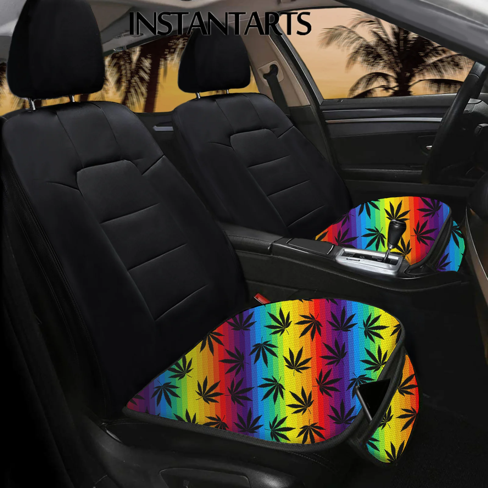 Special Offer INSTANTARTS Foglie Di Cannabis Colorate Design Seggiolino Auto Protezione Tappetino Comfort Driver Anteriori Per Auto E Cuscino Per Sedile Passeggero Discount (7%OFF) Today!